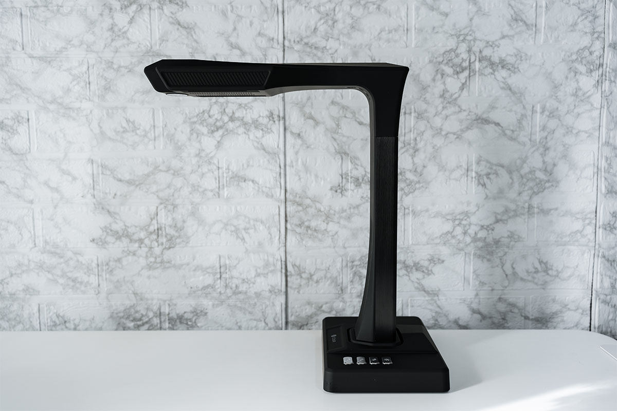 「CZUR ET MAX」はオーバーヘッド式のスキャナーなので、上部に伸びたアームの先端にレンズが設置された構造です。
